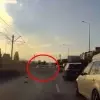 Bursa'da bir otomobilin, duran trafikte bekleyen 4 otomobile ve bir motosiklete çarpması sonucu 2 kişi yaralandı. Olay anı başka bir aracın kamerasına yansıdı.