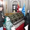 Görüntü Türkiye'den! Fırtına şiddetlenince Atatürk büstüne koştular