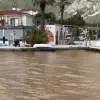 Muğla'nın Akyaka Mahallesi'nde etkili olan sağanak ve fırtına sonucu deniz suyu kahverengiye döndü. Dalgalar deniz seviyesini yükseltti.