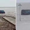 İngiltere'de teslimat yapmak için navigasyonu takip eden kurye, kendini denizde buldu. Minibüsüyle denize giren kuryenin o anları fotoğrafa yansıdı.