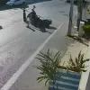 Bodrum'da scooter ile motosikletin çarpışmasında 3 kişi yaralandı, kaza güvenlik kamerasında.