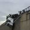 İzmir'in Bornova ilçesinde kontrolden çıkan tır, viyadükte asılı kaldı. Sürücü İrfan Öngen yaralı olarak hastaneye kaldırıldı.