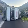 Mersin Tarsus'ta narenciye yüklü kamyon devrildi, ölü ya da yaralı yok, trafik tek şeritten sağlandı.