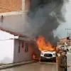 Samsun'un Vezirköprü ilçesinde park halindeki minibüs alev aldı, yangın çevredeki binalara sıçradı.