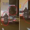Diyarbakır'da "Artık bu kadarına da pes" dedirtecek bir hırsızlık olayı yaşandı. Hareket halindeki, canlı hayvan yüklü TIR'a sepetli motosikletle yaklaşan iki kişi, dorsenin arka kapısını açtı. Şüphelilerden biri, TIR'daki üç koyunu alarak aynı hızda ilerleyen motosikletin sepetine attı. O anlar, başka bir aracın sürücüsü tarafından cep telefonu kamerasıyla kaydedildi.