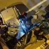 Üst geçide çarpan otomobil ortadan ikiye katlandı: 2 kişi can verdi