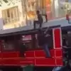 Şanlıurfa'da nostaljik tramvayın önünde devrilen motosikletli iki genç, vatmanın ani refleksi sayesinde tramvayın altında kalmaktan son anda kurtuldu. Olay, cep telefonu kamerasına yansıdı.