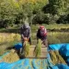 Yusufeli'ndeki çeltik tarlalarında geleneksel yöntemlerle hasat sürüyor, köylüler yoğun çalışıyor.