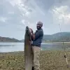 Bursa'nın İnegöl ilçesindeki Boğazköy Barajı'nda su seviyesi düştü, amatör balıkçılar dev yayın avlıyor.