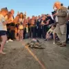 Muğla'nın İztuzu Plajı'nda, tedavisi tamamlanan 10 deniz kaplumbağası ve 5 yavru, Cumhuriyet Bayramı etkinlikleri kapsamında denize bırakıldı.