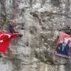 AFAD ekibi, 29 Ekim Cumhuriyet Bayramı'nda Asmakayalar Manastırı'na bayrak ve Atatürk posteri astı.