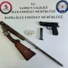 Samsun'un Bafra ilçesinde, sosyal medyada silahla havaya ateş ettiğini paylaştığı tespit edilen O.M. adlı zanlı, düzenlenen operasyonla yakalandı. Zanlının evinde yapılan aramada kurusıkı tabanca, ruhsatsız av tüfeği ve muşta ele geçirildi.